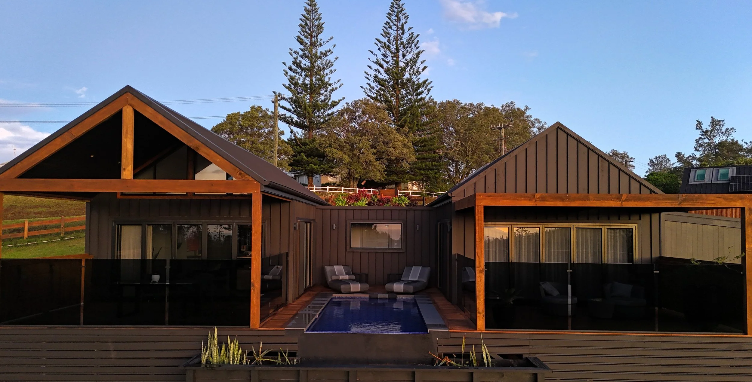 The Ocean View Pool Villa has a stunning panoramic view of the green valleys leading to the ocean, whilst also letting you enjoy the beautiful sunset over Mt Pitt & Mt Bates.